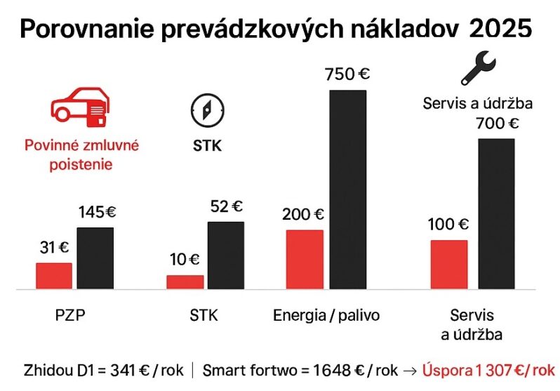 Z porovnania vyplýva, že Zhidou D1násobne nižšie prevádzkové náklady.